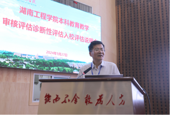 9月27日,学校在一报告厅召开本科教育教学审核评估诊断性评估入校评估说明会。诊断性评估专家组成员,校党委书记黄昕,党委副书记、校长易兵,在校校领导、中层干部、教研室主任、高教研究与教学评估中心参加,党委委员、副校长罗毅平主持第一阶段会议,专家组组长上海工程技术大学党委副书记、校长俞涛主持第二阶段会议。