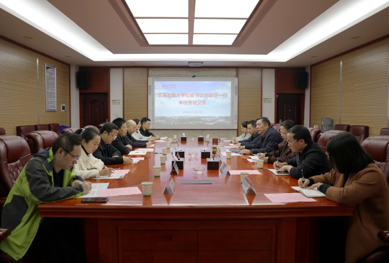 11月22日上午,吉首大学纪委书记刘启定率队来校调研交流。Beat365党委书记黄昕会见了刘启定一行,党委委员、纪委书记齐路良参加座谈会。