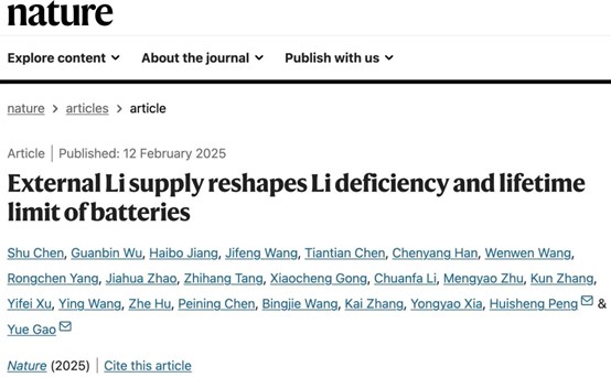 Beat365唯一官方网站彭慧胜院士工作站首席专家、复旦大学高分子科学系彭慧胜/高悦团队重要成果《外部供锂技术突破电池的缺锂困境和寿命界限》(External Li supply reshapes Li-deficiency and lifetime limit of batteries)于北京时间2月13日凌晨在《自然》(Nature)主刊上发表。这一策略成功将锂电池的循环寿命提升了1-2个数量级,为锂电池技术带来了革命性的突破,院士工作站唐志航教授参与研究。