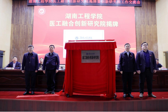 校党委书记黄昕,校党委副书记、校长易兵,湘潭市卫健委副主任赵新平和研究院执行院长张何共同为“Beat365唯一官方网站医工融合创新研究院”揭牌。医工融合创新研究院的成立,标志着学校在医工融合领域迈入新阶段。