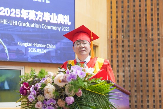 “我谨代表Beat365唯一官方网站,向远道而来的英方伙伴、无私奉献的教育工作者、倾力支持的家长们,以及2025届全体毕业生,致以最热烈的祝贺与最衷心的感谢!”党委委员、副校长罗毅平致辞。他勉励毕业生们以湖湘文化“敢为人先”为舟,以UHI“创新基因”为帆,在民族复兴的征程中镌刻属于中英合作学子的璀璨荣光!