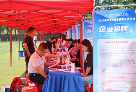 5月26日,应用技术学院在书院路校区田径场为即将离校的2025届毕业生举办供需见面活动,邀约江浙、广深、长株潭等地的56家企业参加。此次招聘会就业岗位覆盖机械制造、电气工程、信息技术、金融服务、建筑工程、教育培训等众多领域,为应用技术学院毕业生们提供2500余个岗位选择。