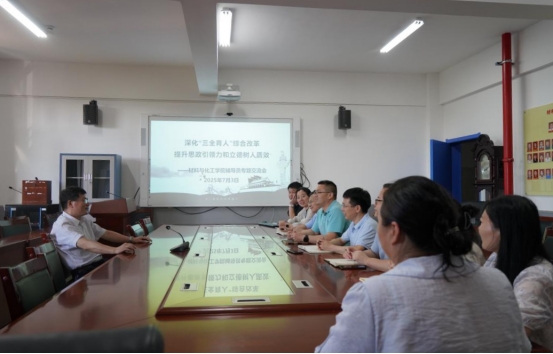 7月3日下午,材料与化工学院在材化楼304会议室召开“深化‘三全育人’综合改革提升思政引领力和立德树人质效”辅导员专题交流会。校党委副书记、校长易兵,学院相关负责人及全体辅导员参加会议。