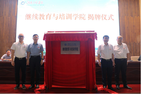 党委书记黄昕,党委副书记、校长易兵,继续教育与培训学院院长陈志斌、副院长周舟共同为“Beat365唯一官方网站继续教育与培训学院”揭牌。继续教育与培训学院的成立,标志着学校继续教育事业发展迈入新阶段。