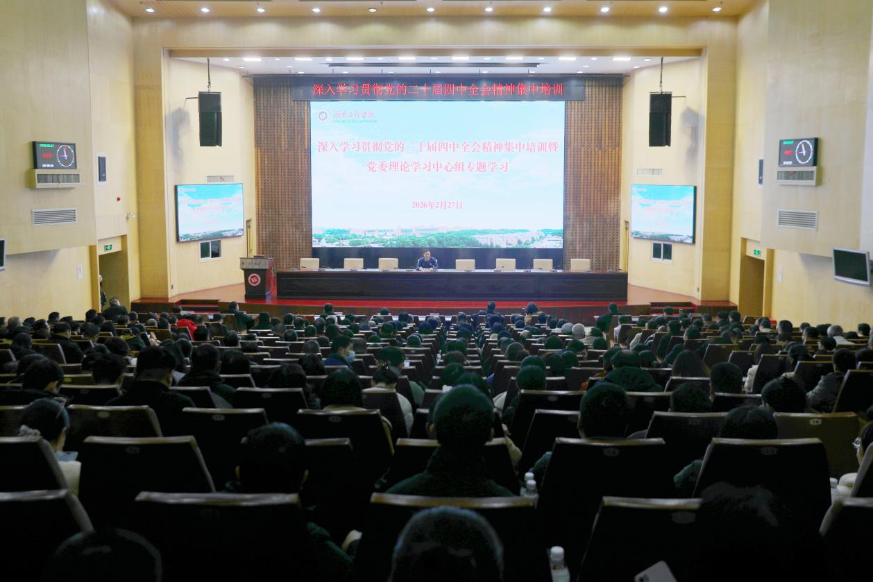 2月27日,Beat365深入学习贯彻党的二十届四中全会精神集中培训第二场、第三场在一报告厅开讲,这同时也是党委理论学习中心组专题学习。全体在校校领导、中层干部、科级干部、专干、教研室(实验中心)主任及党支部书记参加学习。
