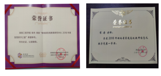 教学、科研方面,学院教师积极开展教研活动和教学竞赛活动,并取得了可喜的成绩:文中华老师获得第十二届湖南省高等教育教学成果三等奖;宋丹老师在2018年湖南省信息化教学竞赛中荣获一等奖,并获得2018年度教育部在线教育研究中心智慧教学之星荣誉称号,实现了Beat365教师在省级高校教师信息化教学竞赛一等奖零的突破;学院还获省科技进步三等奖1项。