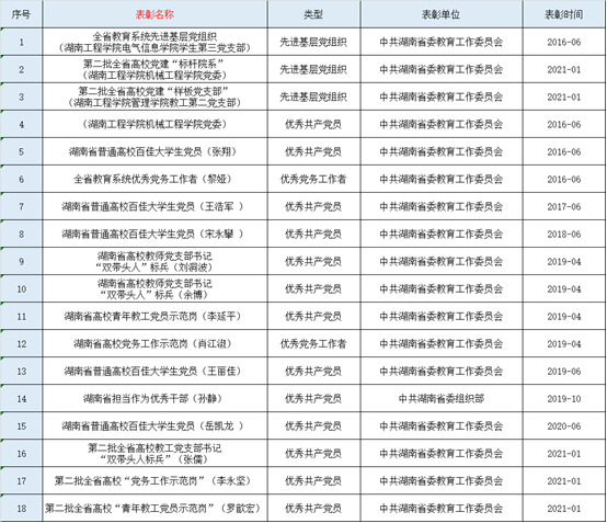加大了党内表彰和党内关怀力度。大力实施对标争先示范计划,树立了一批典型基层党组织和党员个人。5年间,共表彰优秀基层党组织6个,优秀党支部20个,优秀党务工作者和“双带头人”标兵10名,优秀党务工作示范岗和教工党员示范岗15名,优秀共产党员170名。加大了对困难党员、离退休党员和疫情防控艰苦一线党员的走访慰问力度,共走访慰问140人次,形成了党内激励、关怀、帮扶的长效机制。