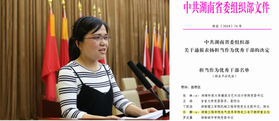 孙静获湖南省委组织部“担当作为优秀干部”表扬