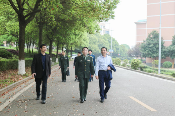 岳塘区人民武装部部长胡长生;学校武装部、党政办、宣传部、教务处、学生工作处、招生就业处、团委负责人,各二级学院党委(党总支部)副书记参加调研。