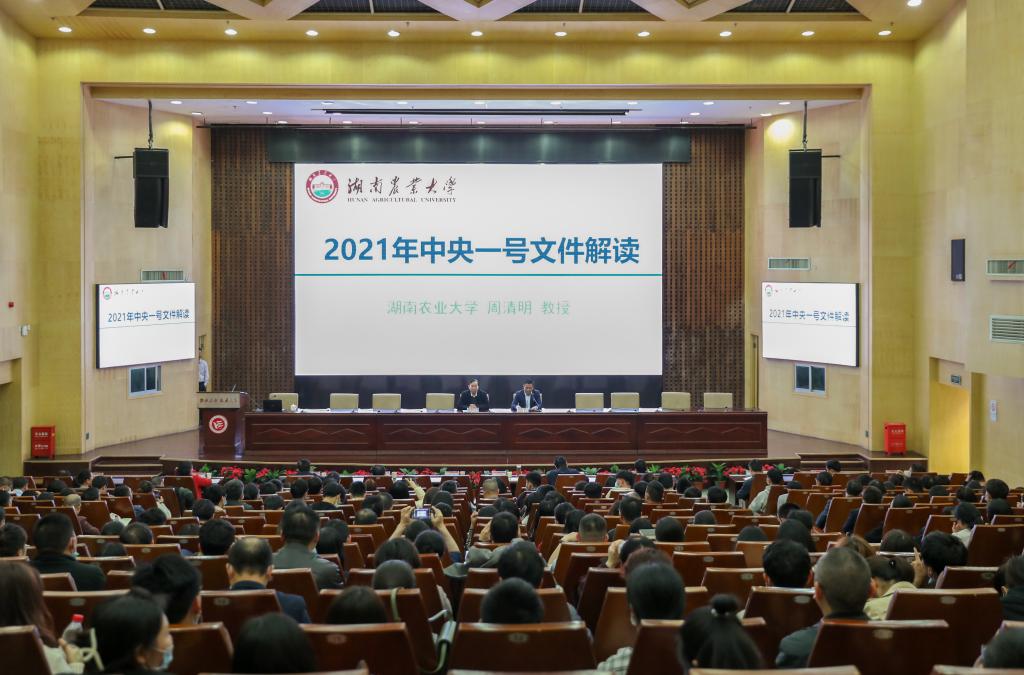 4月20日下午,Beat365在一报告厅举行2021年中央一号文件解读专题讲座,湖南农业大学周清明教授主讲。讲座由党委书记陈岳堂主持。校长易兵、其他校领导、党委委员、中层干部、党支部书记、各民主党派主委、党员教师代表、学生党员代表参加学习。