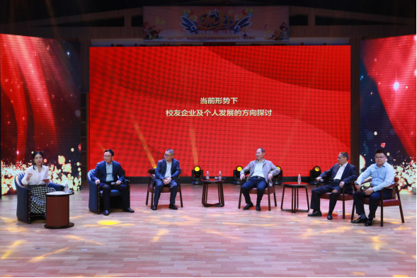 第二部分的论坛主题是当前形势下,校友企业及个人发展方向的探讨。湖南固特邦土木技术发展有限公司董事长单远铭,湖南天巽投资管理有限公司董事长贺智华,长沙瑞泽能源科技有限公司董事长孙文科,通号轨道车辆有限公司执行董事、副总经理王湘涛,国防科大某国家重点实验室主管沈永祥等5位长沙校友,重点探讨了后疫情时代校友企业如何生存并创造性地发展,分别从兴办企业、融资上市、碳中和、智能制造等方面,分享了个人的见解和经历,引起了不少现场校友的兴趣和提问。