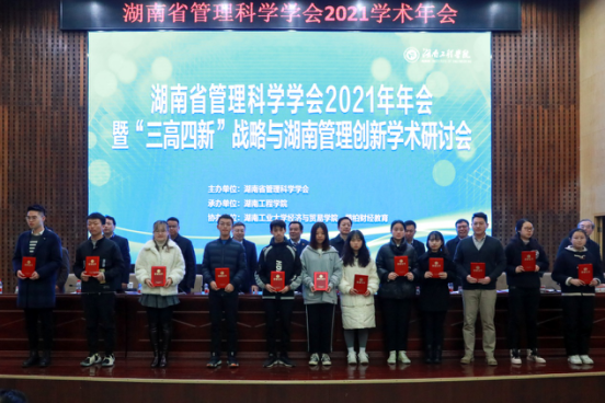 围绕年会主题,管理科学学会共向省内各高校、科研院所等领域的专家学者、科研人员征集了300余篇论文。经专家组评审,最终240篇论文获优秀论文奖。副会长曾福生教授宣读获奖论文名单,与会领导为优秀论文获奖者颁奖。