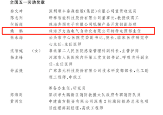 近期,中华全国总工会召开大会表彰2022年全国五一劳动奖和全国工人先锋号获得者,Beat3652006级电气工程专业校友姚鹏荣获“全国五一劳动奖章”。
