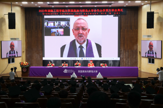 庆典由英国高地与群岛大学(UHI)中国区负责人申琳在线主持,全程采取英方毕业庆典模式和流程。UHI总校校长Todd Walker致开幕词,他通过视频表达了不能来到现场参加庆典的遗憾,并对毕业生们克服疫情影响、坚持学习并顺利取得学位所付出的努力给以了高度肯定和赞扬。