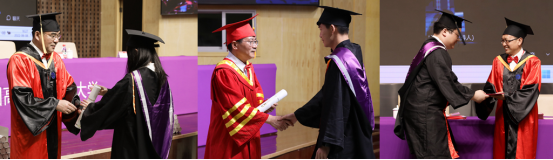 陈岳堂、易兵、罗毅平为学生颁发学位纪念品