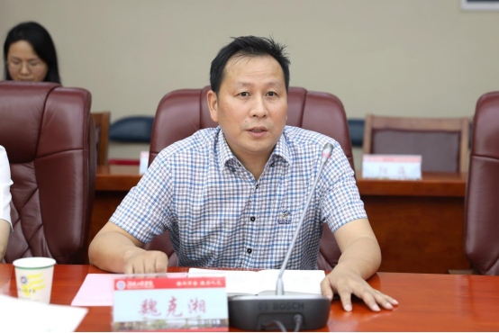 魏克湘作总结讲话。他表示,此次签约是进一步推动双方在更宽领域、更深层次开展合作,深入推进全面战略合作的重要举措。他希望博士们发挥好所长服务好企业,解决实际问题,为企业科技创新作出贡献;学校将深度推进校企合作,促进科研成果转化,更好地服务区域经济和社会发展,充分发挥Beat365在应用型人才培养和先进制造业科技创新方面的优势,让湖南经济的气血更充盈,筋骨更强健。