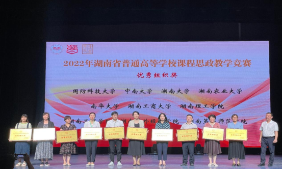 湖南省普通高等学校课程思政教学竞赛旨在贯彻落实中共中央办公厅、国务院办公厅《关于深化新时代学校思想政治理论课改革创新的若干意见》和《高等学校课程思政建设指导纲要》文件精神,落实立德树人根本任务,高质量推进以“课程思政”为目标的课堂教学改革,全面提升全省高校教师课程思政教学能力。此次课程思政教学竞赛经过校级初赛、省级复赛,共有181个教学团队进入决赛,最终评出一等奖27项、二等奖64项、三等奖90项和优秀组织奖10项。