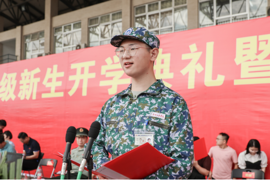 设计艺术学院夏雨作为新生代表发言,他表示在大学时光里,学会认知、学会做事、学会做人,刻苦学习专业,积极探索,努力前行。