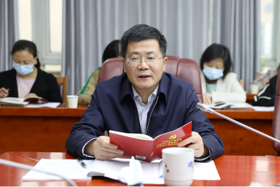 陈岳堂作总结讲话,他结合本次中心组学习,就开展好当前和下一阶段工作,提出四点要求。一要深入学习贯彻习近平总书记重要讲话精神,全面学习把握落实党的二十大精神,弘扬伟大建党精神和延安精神,坚定历史自信,增强历史主动,为夺取全面建设社会主义现代化国家新胜利作出应有贡献。二要坚持把学习贯彻《中国共产党章程》作为“第一位的要求”,持续增强学党章、用党章、守党章的思想自觉、政治自觉、行动自觉,全面系统掌握新修改党章所体现的新理念、新思想、新战略,不断加强党性锤炼,提高党性修养。三要围绕“大思政课”的“课程”属性,改革创新主渠道教学、善用社会大课堂、努力搭建大资源平台、构建大师资体系、拓展工作格局,着力打造具有湖工特色的“大思政课”建设机制与举措,全面推进学校“大思政课”建设。四要深刻认识开展碳达峰、碳中和工作的重要意义,进一步加强碳达峰、碳中和工作的科普宣传,确保习近平总书记关于碳达峰、碳中和的重要论述精神落地落实,紧扣碳达峰碳中和工作要求,努力让校园更美丽、更节能、更智慧。