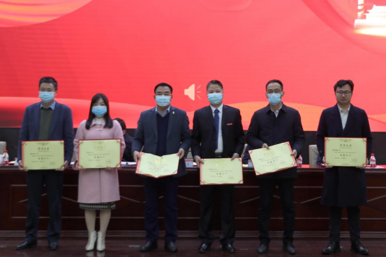 副校长陈赤平宣读2021~2022年度科技工作先进集体与先进个人文件,党委委员、副校长罗毅平宣读2021年湖南省“优秀研究生导师”和湖南省“优秀研究生导师团队”文件,党委委员、纪委书记齐路良宣读2021年湖南省优秀硕士学位论文指导教师文件、校级优秀硕士学位论文指导教师文件。大会为科技工作先进集体、先进个人、湖南省“优秀研究生导师”、湖南省“优秀研究生导师团队”、2021年湖南省优秀硕士论文指导教师、Beat365唯一官方网站2021届优秀硕士论文指导教师颁奖。