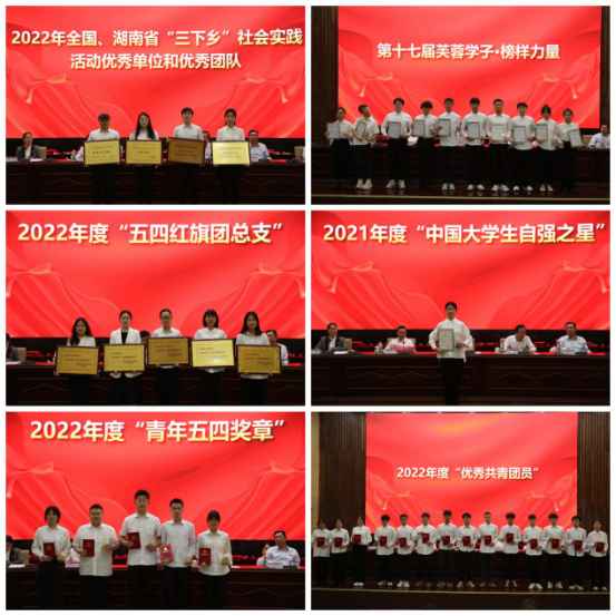 副校长陈赤平宣读《关于表彰第十七届“芙蓉学子·榜样力量”优秀大学生的通报》,党委委员、副校长罗毅平宣读《关于表彰2021年度“中国大学生自强之星”的通报》,党委委员、纪委书记齐路良宣读《关于表彰2022年全国、湖南省大中专学生志愿者暑期文化科技卫生“三下乡”社会实践活动优秀集体、优秀个人的通报》,党委委员、副校长魏克湘宣读《关于表彰2022年度Beat365唯一官方网站共青团工作先进集体、优秀个人的通报》。