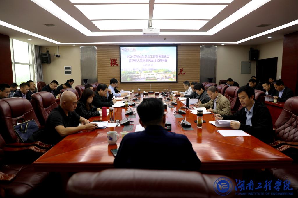 易兵作总结讲话。他强调,要全面落实党中央、国务院和省委、省政府有关决策部署,贯彻落实好“湖南省2024届高校毕业生就业创业工作‘一揽子’举措实施方案”文件要求,全力促进高校毕业生高质量充分就业;并就推进学校就业工作提出四点要求:一是要关心关爱学生,千方百计拓展就业渠道,完善校园招聘服务,招聘活动分片区、分领域组织开展;二是要建立完善就业创业指导体系,优化就业创业培养机制,更好地服务“三高四新”战略定位和使命任务;三是要做实做细毕业生就业服务,为毕业生精准推送就业信息,提高毕业生就业质量;四是要加强全程督导,落实责任,提升履职能力,持续推进就业创业工作。