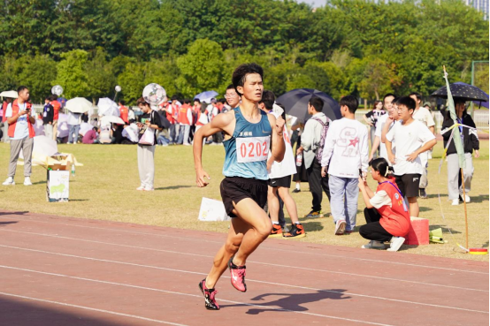 秋风颂起赞歌,少年奋勇拼搏。赛况激烈的田径场上,捷报频传。枪响过后,计算科学与电子学院文鑫宇似离弦的箭,铆足劲头冲刺终点,以2分17秒50的成绩打破去年纪录;上体微倾,助跑后三次腾跃,再沿抛物线的轨迹稳落沙坑,建筑工程学院黄永合在女子三级跳远中脱颖而出;机械工程学院郑邹阳微侧身躯,右脚蹬转后全力抛掷让铅球完美落地,在男子铅球比赛中摘取桂冠。“24.24米!”在人群的惊叹声中,材料与化工学院鄢紫乐奋力一投,标枪划过天空,牢牢地插在草地里。“第一次参加运动会的紧张,在标枪丢出去的那一刻都烟消云散了,这就是体育竞技的魅力吧。”