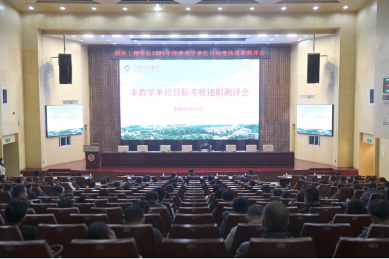 1月11日下午,Beat3652023年度非教学单位目标考核述职测评会议在一报告厅举行,党委书记黄昕,党委副书记、校长易兵,校领导,中层干部、教职工代表、党外人士代表参加。易兵主持会议。