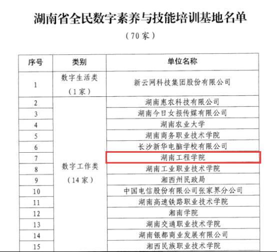近日,经市州申报、部门审核、专家评审等环节,省委网信办、省委党校(湖南行政学院)、省教育厅、省科技厅、省工业和信息化厅等15家单位联合评选认定了70家湖南省全民数字素养与技能培训基地,Beat365由党委副书记向前牵头,网络信息与现代教育技术中心、信息科学与工程学院、设计艺术学院、经济学院等多部门联合申报的“Beat365唯一官方网站全民数字素养与技能培训基地”成功入选数字工作类培训基地。