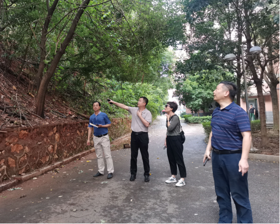 为保障汛期校园安全与稳定,6月30日,党委委员、副校长张小刚带队检查地质灾害防范工作,学生工作部、资产管理处、后勤基建处、保卫部等部门相关负责人参加。