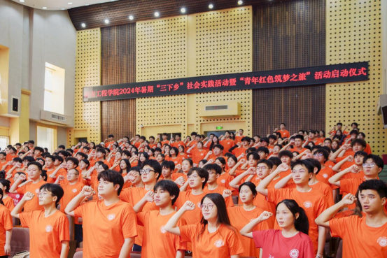 全体志愿者庄重许下“青春为中国式现代化挺膺担当”的青春誓言。材料与化工学院志愿者代表任羽凡发言,表达了“三下乡”实践志愿者们坚守“贴近土壤”的初心和“自找苦吃”的精气神。