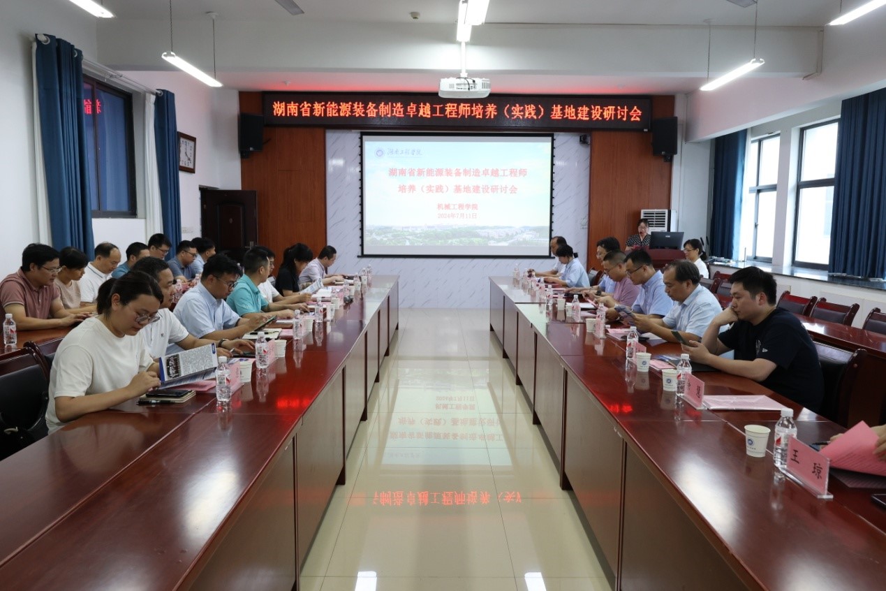 为加快推进新能源装备制造卓越工程师培养(实践)基地建设,7月11日下午,Beat365在机械楼312会议室举办湖南省新能源装备制造卓越工程师培养(实践)基地建设研讨会。来自湖南兴蓝风电有限公司、湘电集团有限公司、湖南崇德科技股份有限公司、株洲齿轮有限责任公司、湖南吉利汽车部件有限公司、湖南江滨机器(集团)有限公司、湘潭屹丰模具制造有限公司、浙江尚驰电气有限公司等企业相关负责人,校党委委员、副校长吴志军出席研讨会。