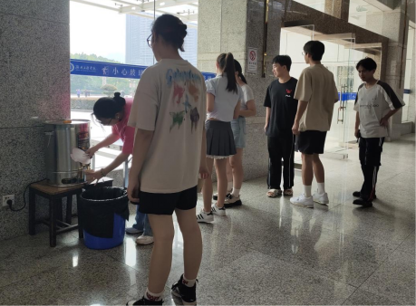 在主校区教学楼的大厅,学校特别设立了免费凉茶供应点。清凉解暑的凉茶成为了师生们课间休息时的最佳饮品。每当课间休息,师生们便纷纷涌向凉茶供应点,用一杯杯凉茶驱散炎热,脸上洋溢着满足与感激的笑容。这凉茶不仅解渴消暑,更传递了学校对师生健康的深切关怀。
