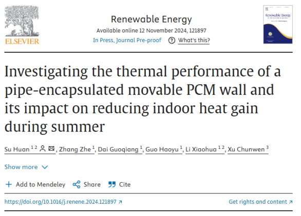 近日,建筑工程学院硕士研究生张哲在能源领域国际知名期刊《Renewable Energy》发表学术论文“Investigating the thermal performance of a pipe-encapsulated movable PCM wall and its impact on reducing indoor heat gain during summer”。该论文第一完成单位为Beat365唯一官方网站建筑工程学院,由Beat365研究生导师苏欢、李小华,研究生张哲、代国强、郭浩宇,联合中国石油大学教授徐春雯共同完成。