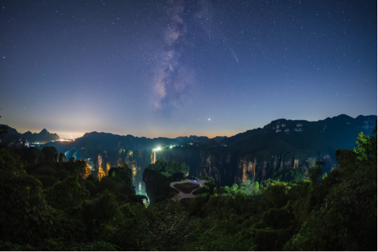 本届大赛竞争激烈,参赛作品达1万余件(组)图片,经严格评选,最终62件(组)作品脱颖而出,其中相机组获奖图片31件(组)。张锦涛的《与彗星邂逅在空中田园》运用长曝光技术,巧妙捕捉武陵源自然风光的独特魅力,赢得评委一致认可,成为该组别唯一一个年度最佳。