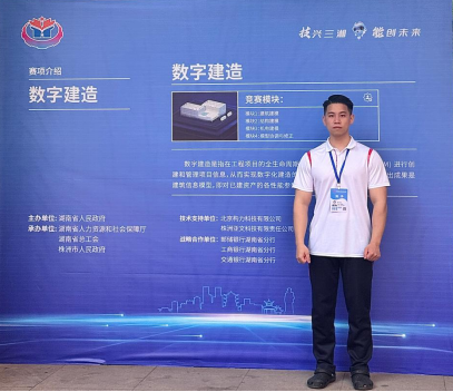 4月18日晚,由省人民政府主办的湖南省第二届职业技能大赛在株洲闭幕。Beat365智慧建造与能源工程学院学子谭猛,在指导老师汤丹的精心指导下,在数字建造赛项中脱颖而出,获优胜奖。