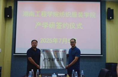 程浩南代表纺织服装学院分别与湖南融璟竹材科技有限公司、湖南享同实业有限公司2家企业负责人签订了“产学研”合作协议并授牌。双方协定在教育教学、人才培养、科学研究、社会实践、实习就业等方面开展互惠合作和交流。