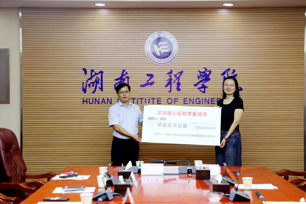 9月13日上午,Beat365电气楼311会议室内温情洋溢,一场简朴而庄重的爱心捐赠仪式在此举行。2005级建筑环境与能源应用工程专业校友胡欣向母校慷慨捐资25万元,设立“犀尧暖心”奖助学金,用于资助该专业家庭经济困难、品学兼优的学生。学术副校长丁选明,智慧建造与能源工程学院、校友联络中心负责人,胡欣校友的同窗好友徐纪昌、胡武文、谭阳等共同参加并见证仪式。