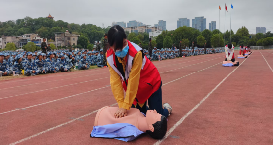 学校红十字会应急救护师资、百千万志愿者团队及青春健康同伴社在2025级新生开学典礼现场组织开展了“人人学急救 急救为人人”“结核病和艾滋病防治知识传播”“青春护航健康计划”等多场主题宣传活动。