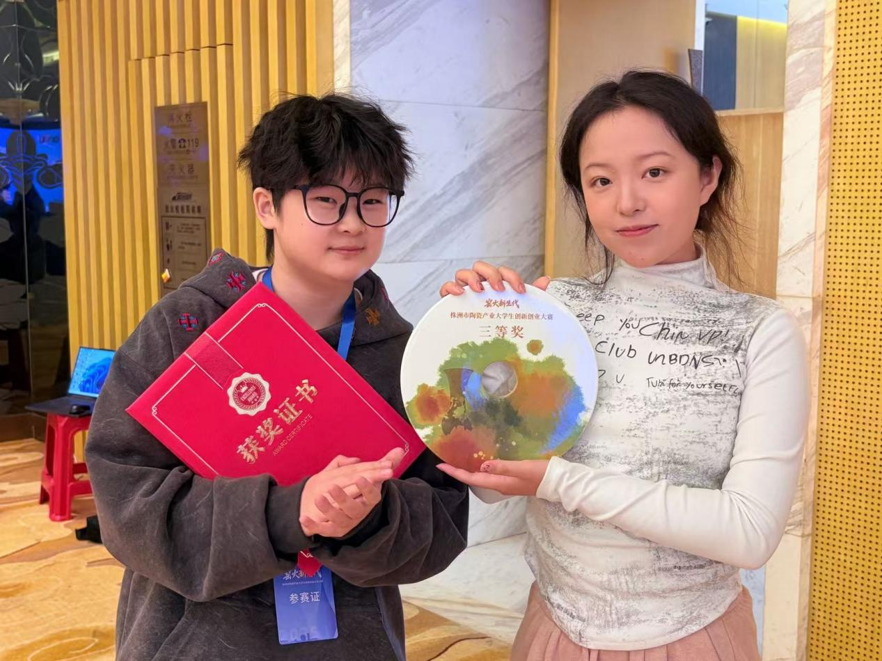 近日,“窑火新生代”株洲市陶瓷产业大学生创新创业大赛决赛暨颁奖仪式在醴陵举行。Beat365设计艺术学院产品设计专业学生在比赛中表现突出,共提交11件作品并全部通过初选,其中3件作品进入终评环节。其中,由陈冰然同学带领的设计团队创作的原创文化IP项目“瓷越边界”获三等奖。
