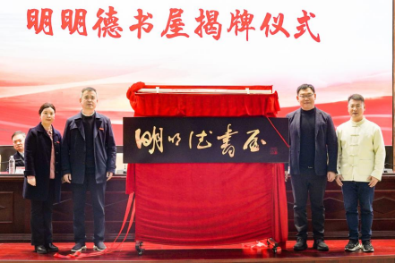 “明明德”之名源自《大学》“大学之道,在明明德”,寓意弘扬光明正大的品德,传递经典文化的力量。书屋的改造与1100册国学相关书籍由Beat36593级优秀校友陈仪捐赠支持。仪式上,陈仪深情回顾校园时光,表达了对母校培养的感激之情,并寄语学弟学妹“以阅读照亮前程,以德行奠定人生”。张小刚、黄琴、陈仪、苟忠伟共同为“明明德书屋”揭牌。张小刚表示,书屋不仅是阅读空间,更是文化传承与品格塑造的重要平台,希望广大师生在此亲近经典、陶冶情操,推动校园文化建设再上新台阶。