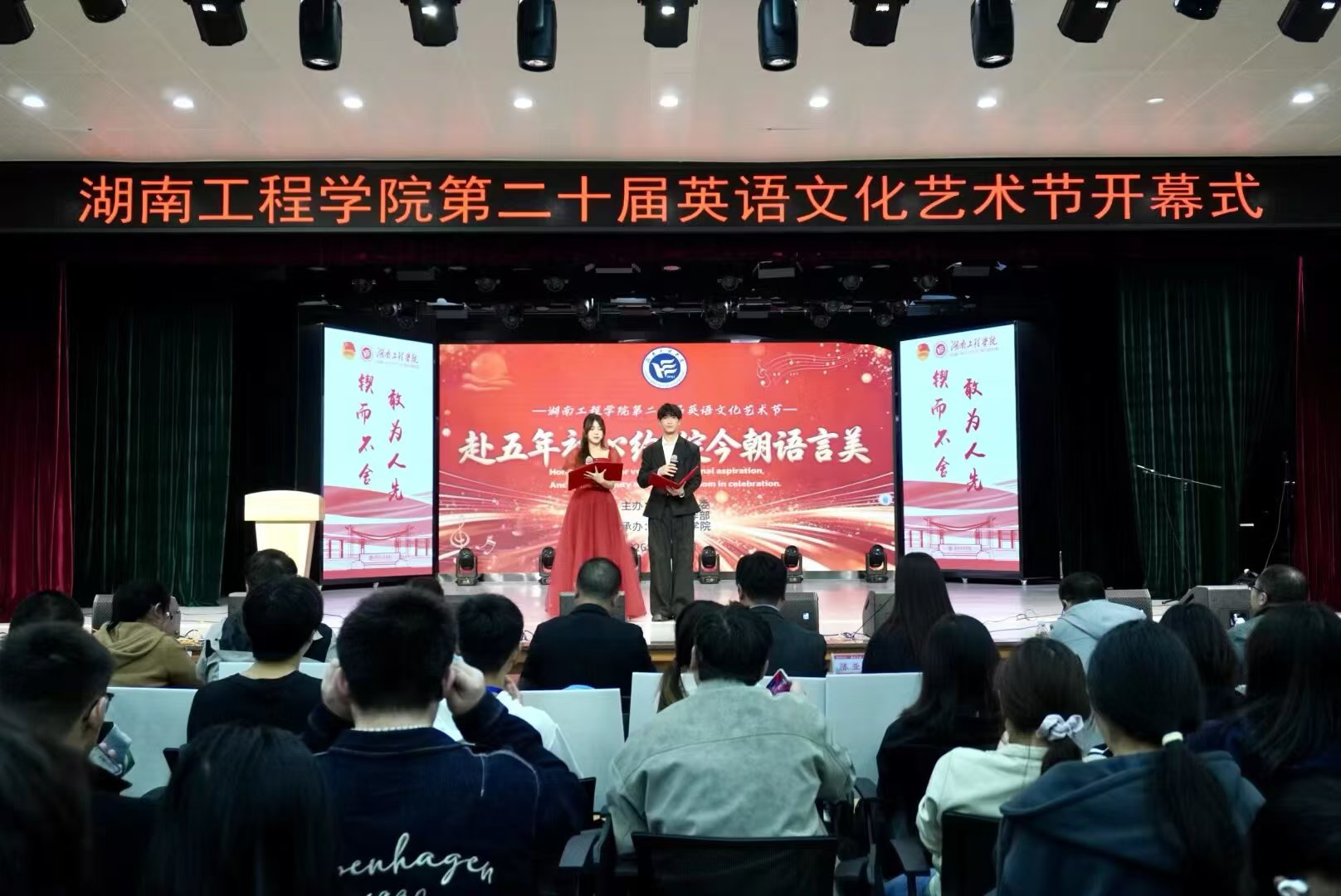 卓越工程师学院院长曾赛峰介绍了本次艺术节的五大赛事:分别是“China in the Garden of Civilizations”英语主题演讲比赛、英文歌唱比赛、英文直播比赛、英文影视配音大赛及“用英语讲好湖南故事”短视频大赛。