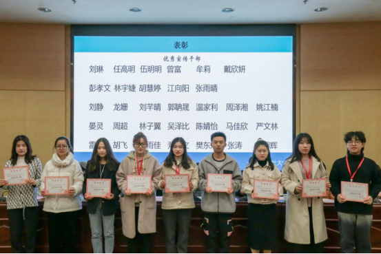 会上,熊龙英老师宣布表彰名单,全体老师为23届学通社成员颁发荣誉证书和聘书,宋强老师宣布24届学通社成员名单。