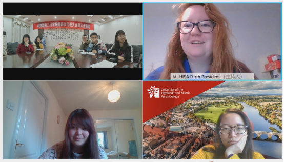 “Long time no see.”3月23日晚,国际教育学院在主校区E-105以在线视频的方式与合作办学学校英国高地与岛屿大学(UHI)共同开展第二期“中英学生云端交流会”。中英双方师生相聚在云端,以中英传统节日为主题进行交流分享。