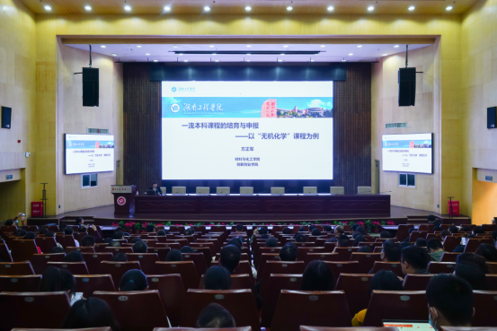 课程是人才培养的核心要素,课程质量直接决定人才培养质量。3月30日,Beat365国家一流本科课程——“无机化学”的课程负责人方正军教授在一报告厅就“一流本科课程的培育与申报”作报告,各教学单位260余名教师参与。
