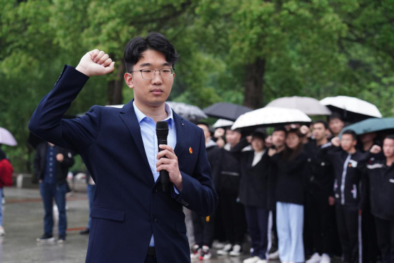 张小刚代表学校向新团员致以诚挚的祝贺,希望他们增强团员意识,爱国奉献,积极进取,发挥优秀团员的表率作用。同时,他向广大青年团员提出三点希望与要求:一是要弘扬爱国之情,树立报国之志,引导团员青年厚植爱党、爱国、爱社会主义的情感,把最美好的青春献给祖国和人民;二是要坚定理想信念,凝聚青春力量,青年要锤炼品德,树立和践行社会主义核心价值观,凝聚力量,努力拼搏,在实现中华民族的伟大复兴的道路上,散发青春的力量;三是要树立远大理想,勇于创新创造,青年学生要勇于创新,深刻把握时代潮流和国家需要,敢为人先、敢于突破,以聪明才智贡献国家,以开拓进取服务社会。