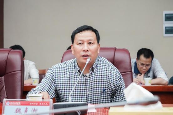 魏克湘对各位企业家到校交流指导表示欢迎,简要介绍了学校、电气与信息工程学院和计算科学与电子学院情况。他希望,双方建立校企产、学、研深度合作的长效机制,为国家集成电路的发展贡献湖工力量,促进校企全方位合作迈上新台阶。