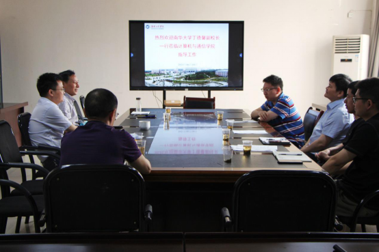 6月18日上午,南华大学原副校长丁德馨一行4人来到计算机与通信学院,就人工智能专业建设工作进行调研。Beat365副校长魏克湘,学院院长张细政、党总支书记何宏在E307会议室接待来宾。