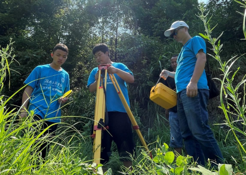 迎着清晨的阳光,建筑工程学院实践团成员们扛着测绘仪,逐个对村内道路100多个点进行定点测量,并通过对小溪边缘的定点测量,探寻适合建桥的地方,绘制地形草图,以便后期的乡村规划建设。另一组成员则拨开灌木草丛,找到一处平整地,通过调整仪器,优化技术问题,完成了对酸菜加工厂的尺寸和高程的测量。“我们向当地村民了解了当地房屋建筑的久远历史,并结合当前农村现状的基本要求制定乡村规划,这让我们更加有底气,也更有动力将规划落到实处。”实践团成员表示。