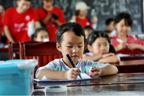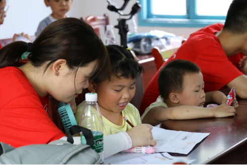 “你心目中的家乡是什么样的呀,它会有像棉花糖一样的白云吗?”在当地儿童的美育课程上,设计艺术学院实践团队员耐心引导孩子画出心中最美的家乡。孩子们天马行空的想象力和对色彩丰富的感知力,让实践团成员深受震撼。当一幅幅“我心中最美的家乡”画好之后,“老师们”拿出几张画作展示出来,让小朋友进行具体描绘。小朋友看着画面,憧憬地说:“我的家乡一定要有大片大片的花田,有很多漂亮的房子,里面有我最喜欢的叮当猫,还有,我希望可以和我爸爸妈妈都住在里面。”